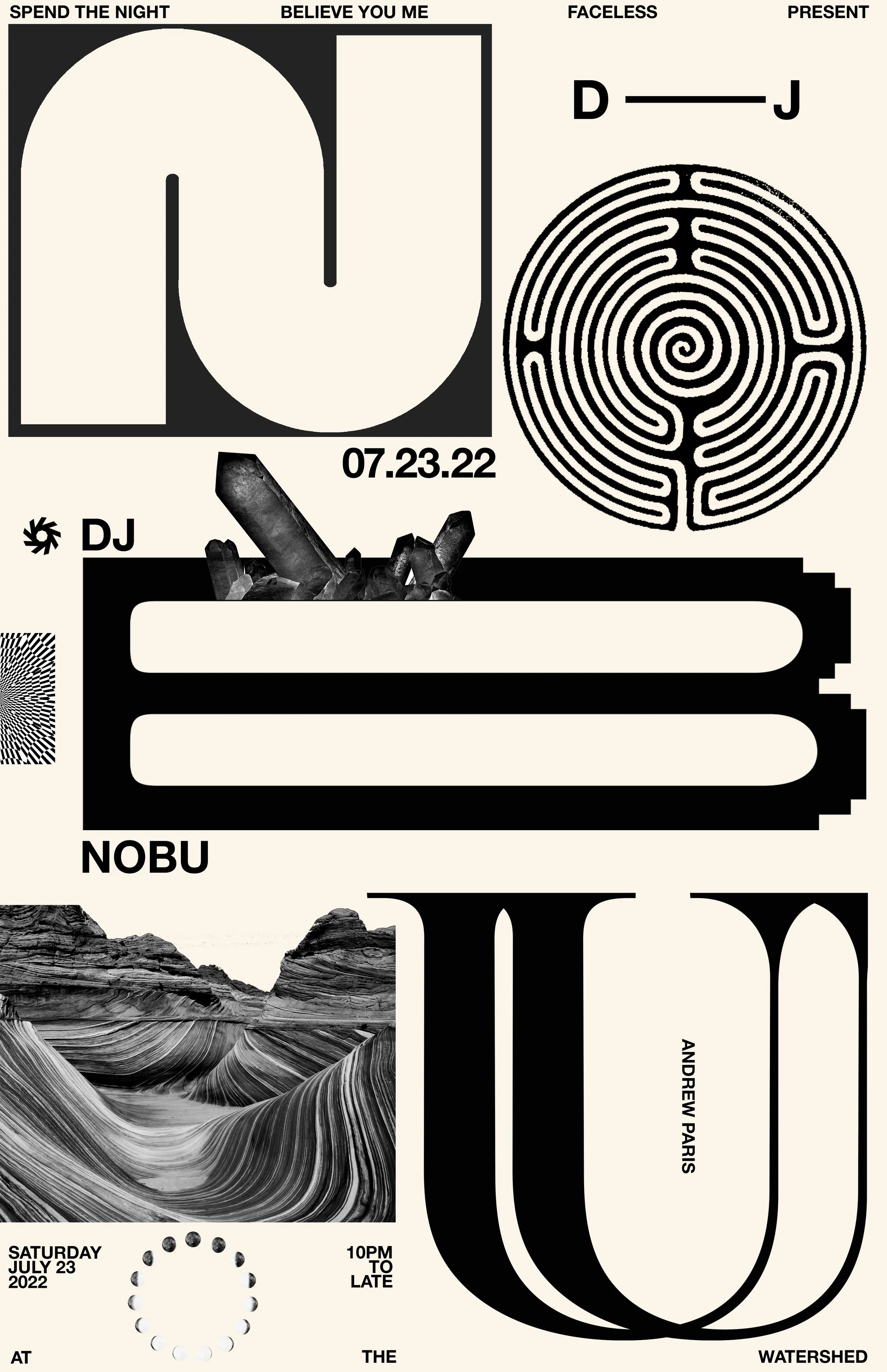 A series of posters promoting underground house and techno events in Portland, OR USA